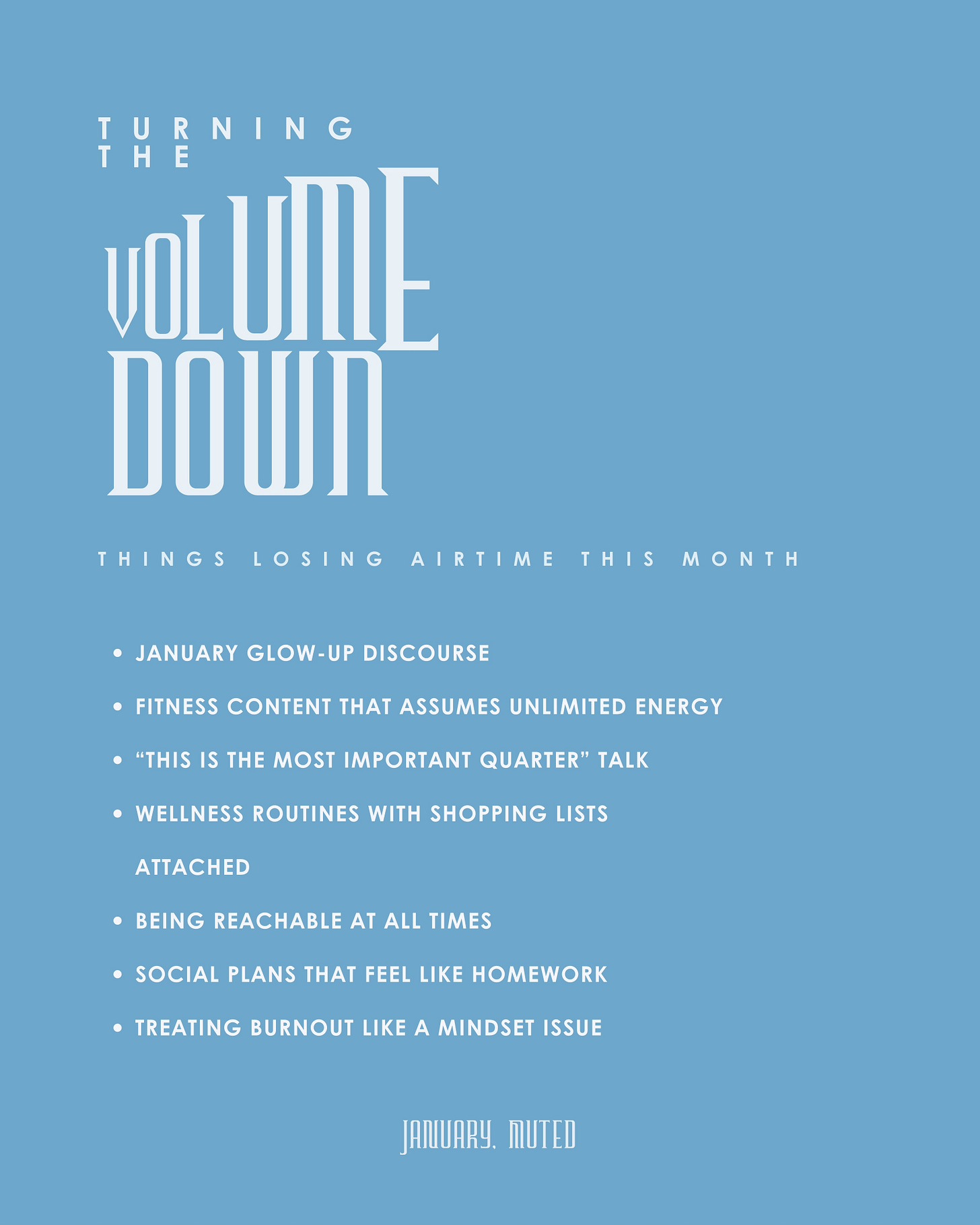 January always shows up with a megaphone, whether we asked for it or not. Everyone’s announcing resets, algorithms are yelling about discipline, and suddenly your inbox is acting like Q1 is a personality test. Meanwhile, most of us are still thawing out, mentally and physically, trying to remember how to exist outside of sweatpants and soft lighting.