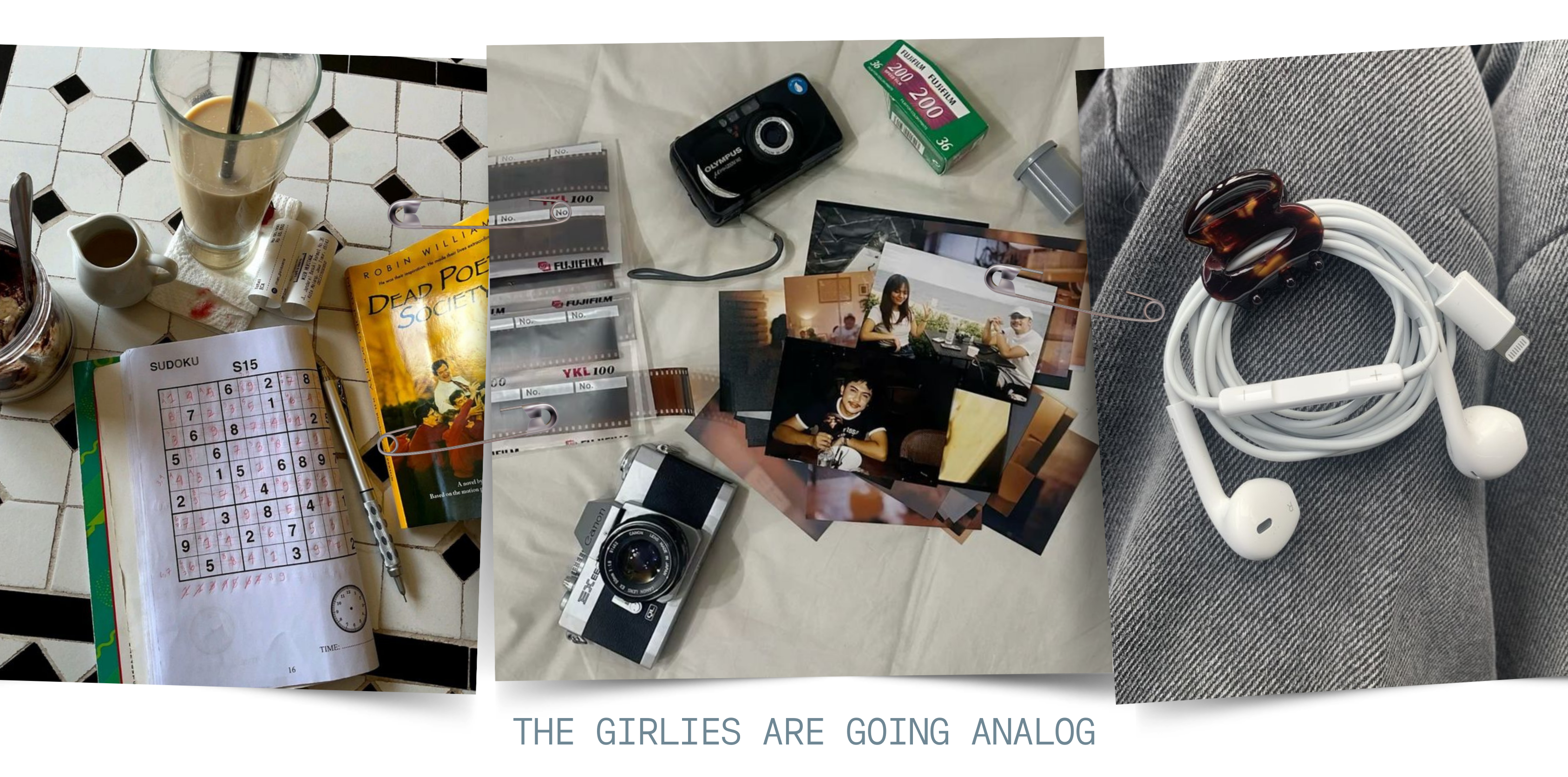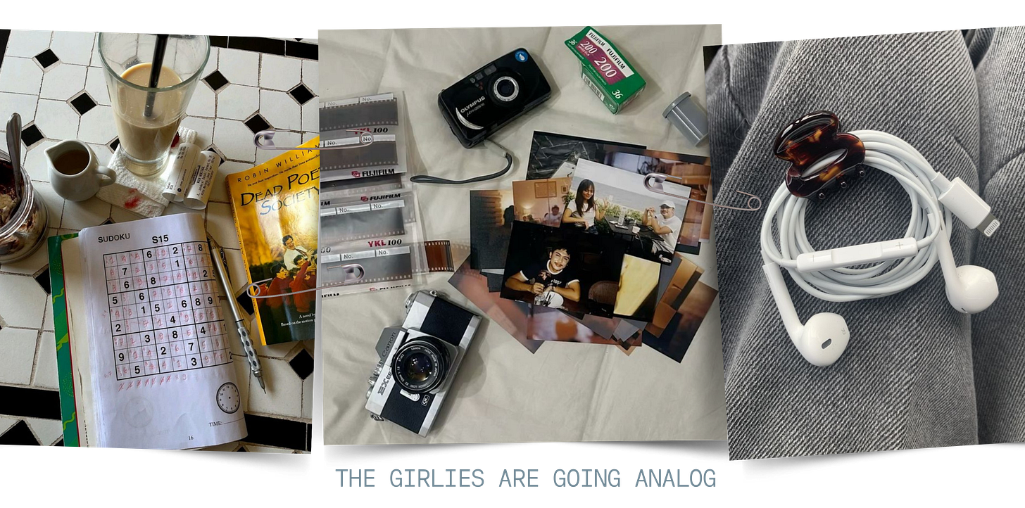 This isn’t about deleting every app and moving to a cabin. It’s more like: film cameras making quiet reappearances. Paper planners. Printed books. CDs. Wired headphones (yes, those). More in-person plans. More hands-on hobbies. Journals with absolutely no intention of being aesthetic — though somehow, against everyone’s will, they still end up cute.