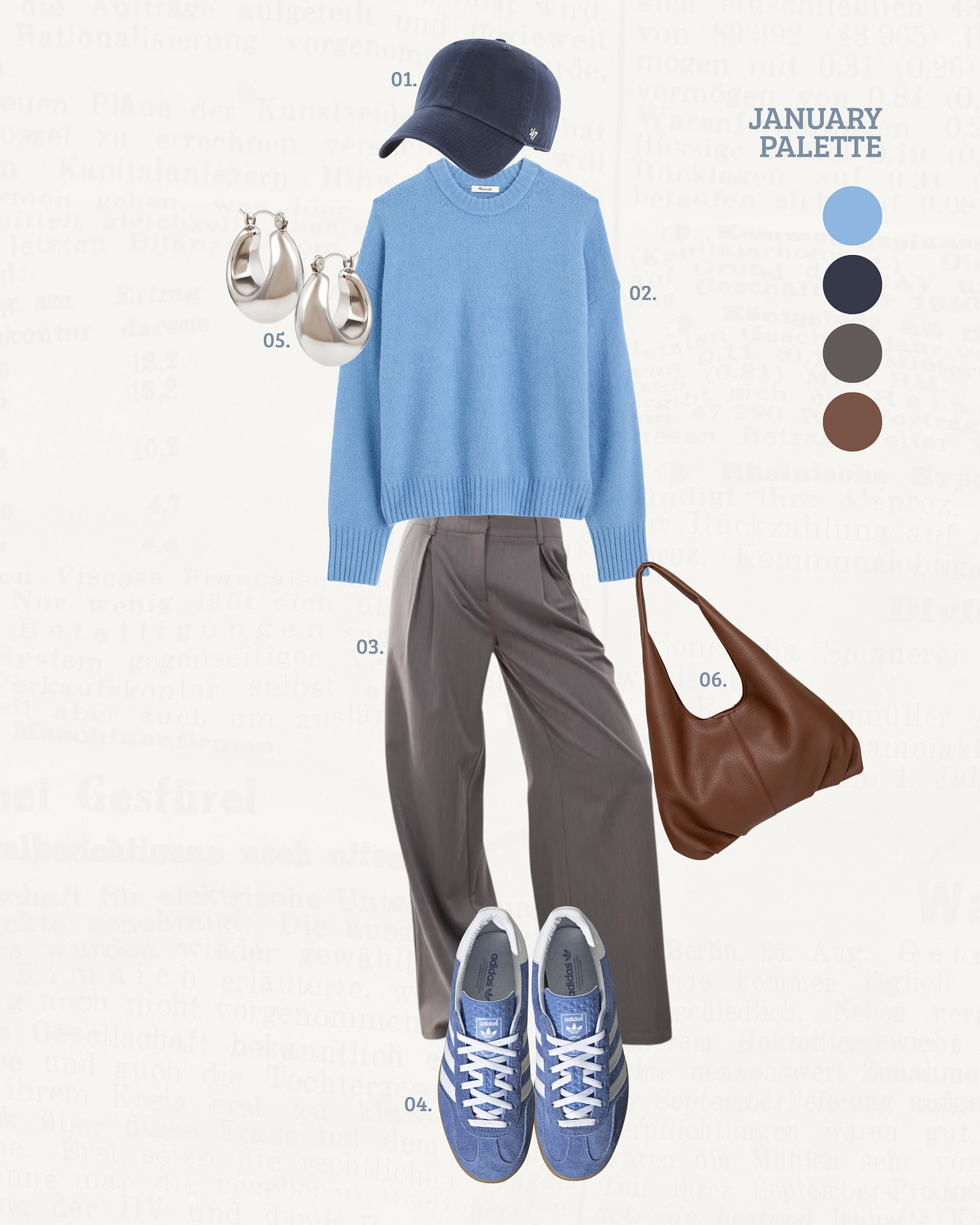 Lately, winter outfits have been about doing less on purpose. Choosing two colors that naturally work together and letting them carry the look. Slate blue softens everything and dusty navy adds structure without feeling stiff. The result feels considered, but effortless — like the outfit knows what it’s doing even when you don’t.
