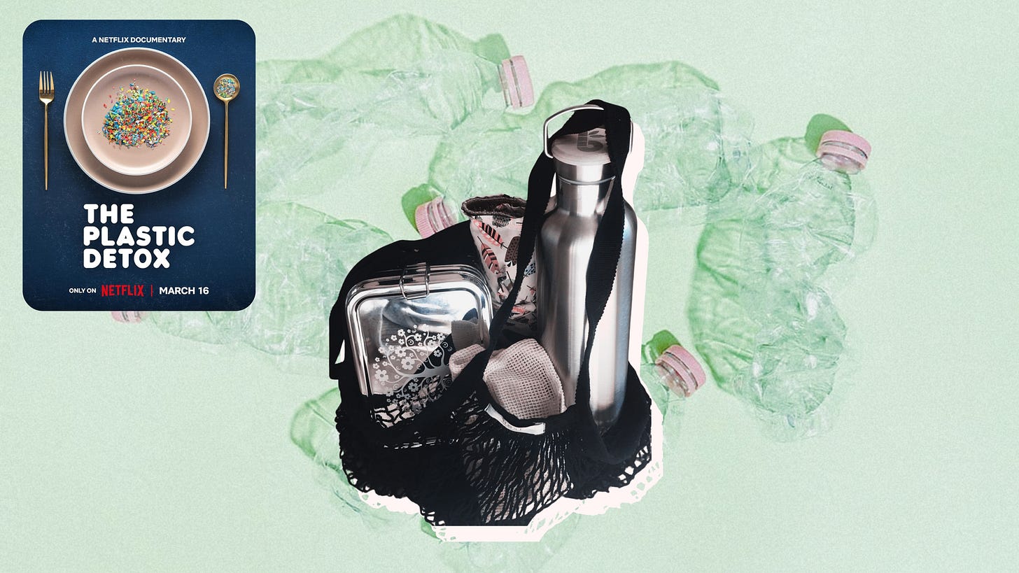 A Netflix documentary called The Plastic Detox drops on March 16th, and the conversation around it has already been spreading for weeks. The short version: microplastics — tiny particles that shed from food packaging, water bottles, cookware, even clothing — have been found in human blood and organs. Scientists have been aware of this for a while, but the rest of us are just catching up. This documentary follows six couples with unexplained infertility as they lower their exposure to plastics in hopes it helps them conceive.